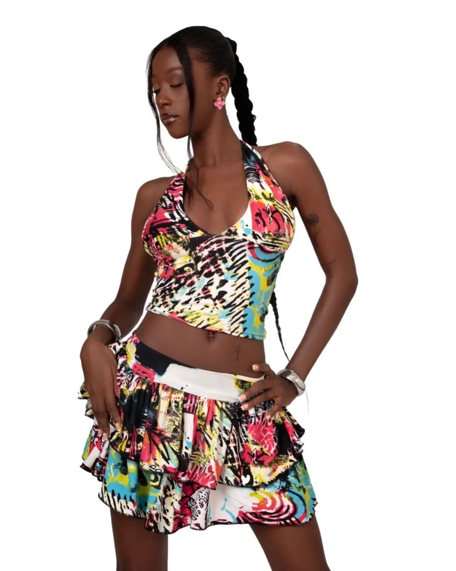 Mini Zebra print cowl set. As the life of the party, you deserve an outfit that gives the same energy you do, okay? The sultry set is perfect for a beach day or a night out—one outfit, endless possibilities. And we’re in the mood to step on necks this year so YES!
